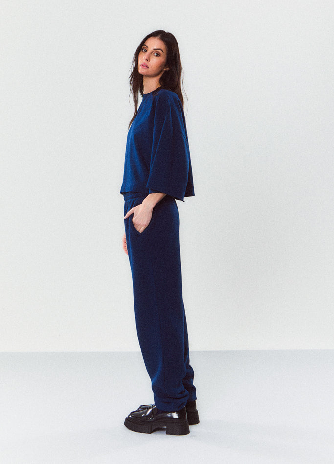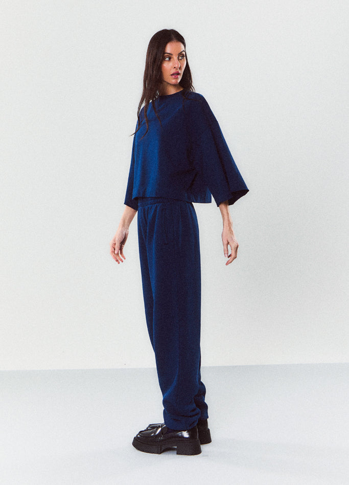 - Crop Bell Sleeve Raw Edge Boxy Fleece Tee